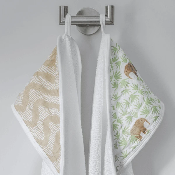 - Absorbente: La capucha de muselina mantiene la cabeza caliente y seca