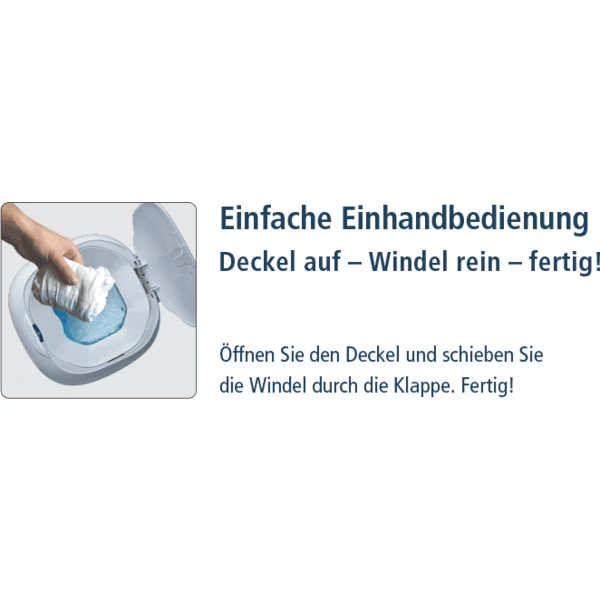 Debido a la capacidad extra grande, los viajes frecuentes al basurero son cosa del pasado. Hasta 57 pañales pueden ser desechados de forma higiénica y absolutamente inodora en el contenedor de pañales Dress-Up XL.
