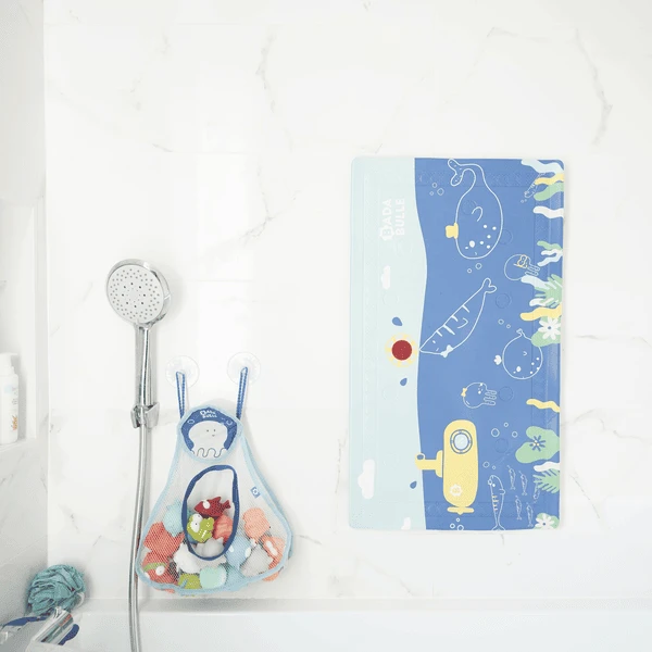 Gracias a su material transpirable, el B aden etz permite guardar cómodamente los juguetes y el secado rápido evita el moho en el borde de la bañera.