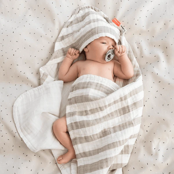 - Suave toalla de baño con capucha y estampado de rayas