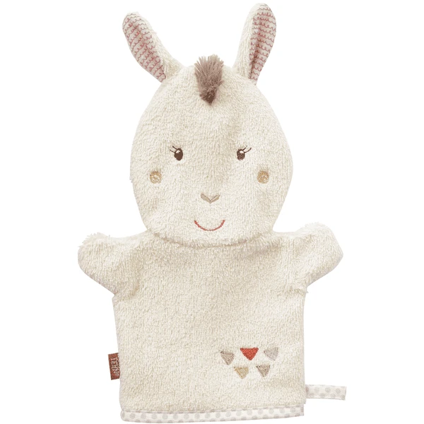 Este lindo guante de lavado llama de la colección Perú ofrece con sus colores