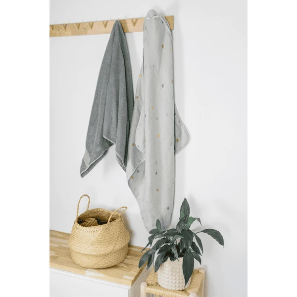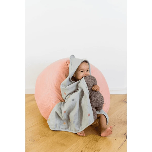 Se puede lavar a 40 °C y es muy fácil de cuidar. La toalla con capucha está fabricada con tejido certificado OEKO-TEX, por lo que no contiene sustancias nocivas y es ideal para bebés y niños pequeños.
