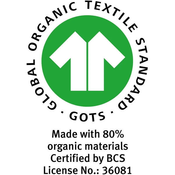 - espalda: 80 % algodón GOTS, 20 % poliéster