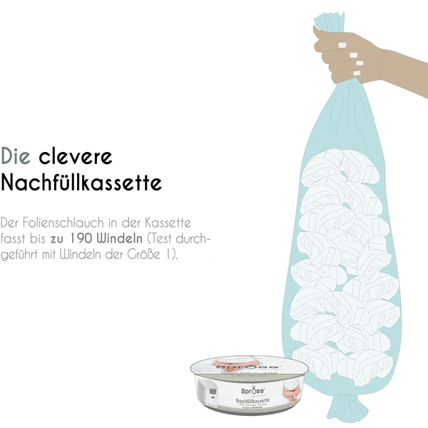 capacidad para 190 pañales (prueba realizada con pañales de la talla 1). La
